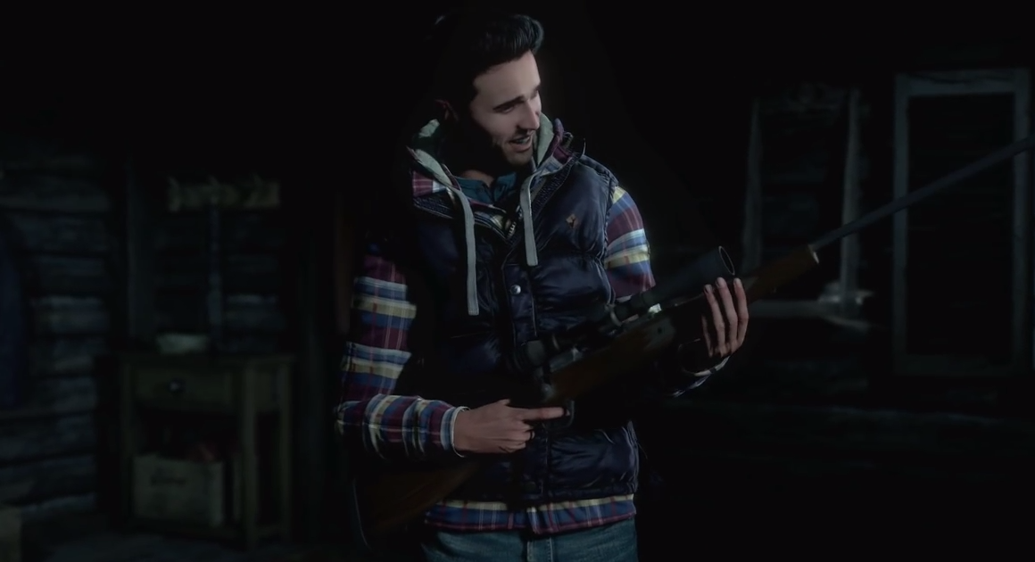 The rifle is first seen in Chapter 3 inside the guest cabin. Mike may pick it up from its case while searching the cabin and can either show it to Jessica or scare her with it. Mike and Jessica's relationship will decrease from both dialogue options. In Chapter 4, Mike takes the rifle before running out of the cabin and uses to assist in the rescue of Jessica, holding it over his back and using the scope to search out her location. He can then use it to shoot an unidentified creature in the mines after the elevator shaft collapses along with Jessica. When Mike finds a mysterious man atop the mineshaft and attempts to shoot him, the rifle is either jammed or out of bullets, after which Mike throws it on the ground and leaves it.