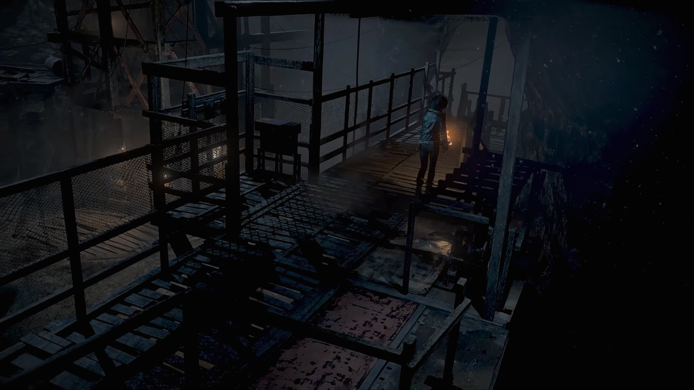 The mines are then seen after the radio tower falls into the mines (only if Matt survived the deer encounter). The radio tower is about to fully collapse and Emily is barely holding on, with Matt having the high ground. He may attempt to save her or jump to safety. Jumping to safety will result in the fire tower fully collapsing deeper into the mines, taking Emily with it. Saving Emily will result in her slipping off and falling deeper into the mines. Matt, still on the fire tower, falls into the mines as well. He then encounters a Wendigo, from which he can escape from or die.